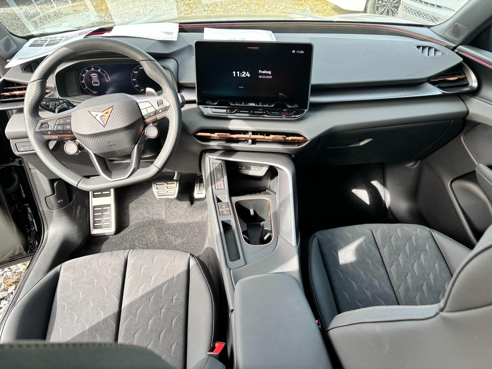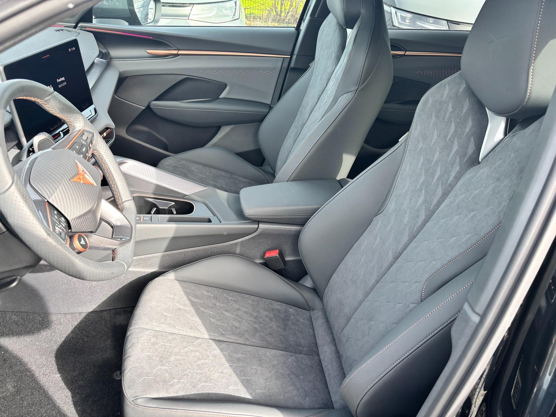 Innenausstattung Interieur "Moon Light" Dinamica: Sitzfläche in Dinamica Schwarz, Nähte in Kupfer; Vordersitze elektrisch einstellbar; Fahrersitz mit Memoryfunktion; Außenspiegel mit Memoryfunktion; Sitzheizung vorne; Elektrische Lordosenstütze Vordersitze; Indirekte Beleuchtung Türen vorne und hinten; Armaturenbrett in Schwarz; Mittelkonsole in Schwarz; Türgriffe in Kunstleder Schwarz; Mittelarmlehne in Schwarz